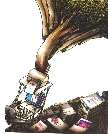 而今提倡无纸办公,有效地节约了资源。据报载:每生产1000张标准复印纸需要一棵培育三年的树木所制纸浆,惊人的数字!【古巴】博里甘