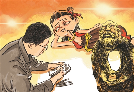 28岁的金宇希,毕业于辽宁财贸学院艺术设计专业。大学四年级实习时,出于对雕刻工艺的兴趣,他专程来抚顺合璧斋公司学习煤精雕工艺。