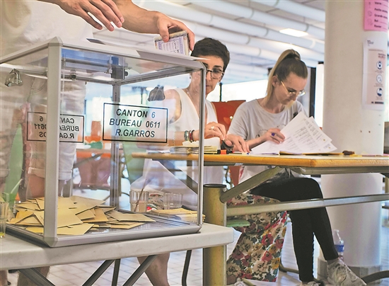 法国国民议会选举第二轮投票19日在法国本土全面展开。来自多个政党的1100多名候选人将角逐577个国民议会席位中的572个席位。在12日举行的首轮选举已决出5个议席。新华社发(塞尔日·阿乌齐 摄)