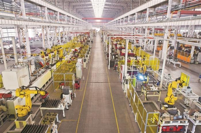 图为6月14日在上海三一重机股份有限公司生产车间里,机器人正在作业。 新华社记者 金立旺 摄