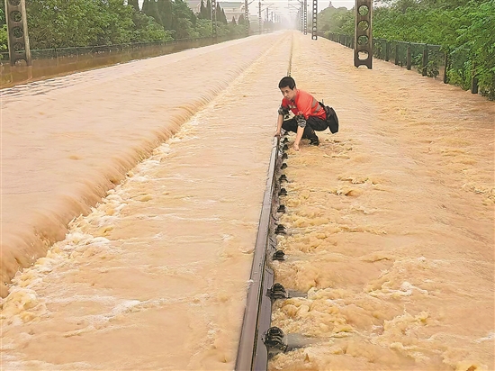 当日,沪昆普速线上饶至广丰区间上下行线路,不断出现水漫线路道床的险情,中国铁路南昌局集团有限公司迅速组织工务、建设、供电等单位近400余名抢险人员、20余台大型抢险机械设备赶赴水害现场开展抢险修复,尽快恢复线路正常运输秩序。项梁 胡国林 摄