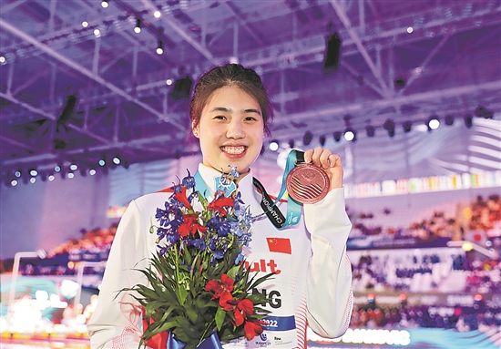 北京时间6月20日凌晨,在匈牙利布达佩斯举行的2022年世界游泳锦标赛女子100米蝶泳决赛中,中国选手张雨霏获得铜牌,为中国游泳队摘得本届世锦赛首枚奖牌。