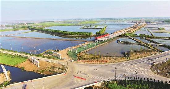 地处江苏省盐城市的大纵湖素有“水乡泽国”之称,是保存完好的湖荡湿地生态资源,中铁十五局阜溧高速JHX-YC6标段坚持绿色施工,全力保护这片净土。赵纯杰 摄