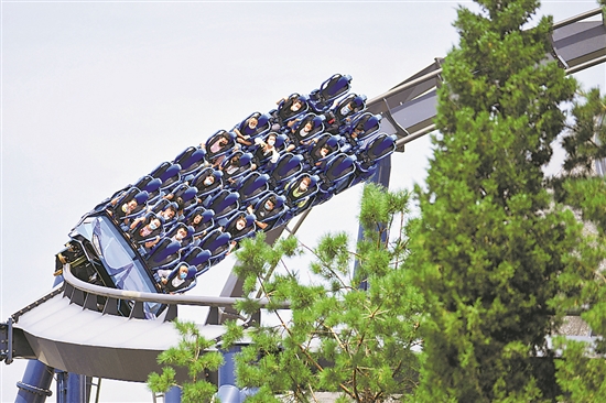 6月25日,游客在北京环球影城主题公园参观游玩。北京环球度假区6月24日起分阶段逐步恢复运营。
