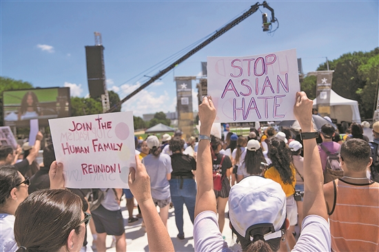 美国亚裔人士25日午后在首都华盛顿市国家广场举行集会,呼吁停止针对亚裔的仇恨及暴力犯罪行为。