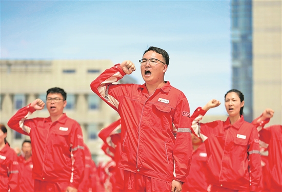 6月27日,中国石油大庆油田举行“强国复兴有我、石油工人心向党、严实作风树形象、喜迎党的二十大”千名新党员代表入党宣誓活动,引导广大干部职工永远听党话、跟党走,奋进新征程、建功新时代。