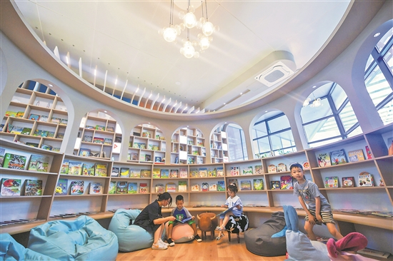 图为7月2日,孩子们在位于杭州市富阳区银湖街道硅谷社区的“合之舍”书房内看书。该书房是银湖街道“15分钟品质文化生活圈”的重要示范点位。