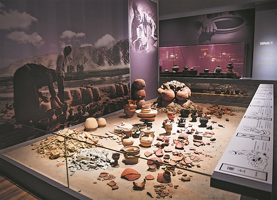 西藏博物馆于1999年10月落成开馆,是西藏唯一一座综合性国家一级博物馆。西藏博物馆新馆项目总占地面积达6.5万平方米,主体建筑3层,包括陈列展示区、藏品保管区、公共服务区、文物保护研究区等,新设儿童体验馆、文创体验馆、4D影院、观景平台、茶坊等教育和服务设施。图为西藏博物馆新馆内制陶工艺展区的展品(6月30日摄)。