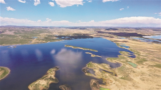 青海省果洛藏族自治州玛多县境内的星星海一角(7月3日摄,无人机照片)。