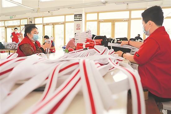 7月11日,山东省青岛西海岸新区康源残疾人辅助性就业中心内,残疾人职工在工作台上忙碌。 西海岸新区进一步推进残疾人辅助性就业,通过对残疾人进行培训,让残疾人自食其力,既提高了残疾人的自信心,又减轻了其家庭负担。本报通讯员 王培珂 摄