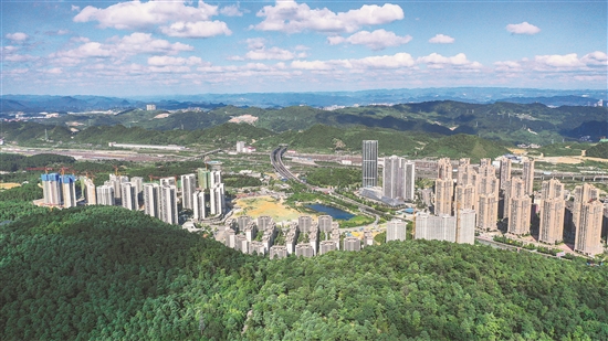 这是7月12日拍摄的贵阳市长坡岭国家级森林公园一角,城市与公园已融为一体(无人机照片)。
