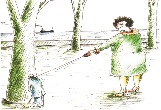 不文明行为深为民众所诟病,也遭家人的腻烦。瞧,这位没出息的男人能不被妻子低看吗?漫画讽刺虽尖锐,但在情理之中。