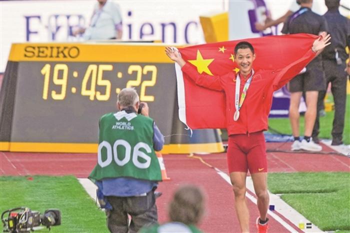 王嘉男披上一面五星红旗,在两万多名观众面前庆祝这历史性的胜利。对于这座号称田径之城的海沃德田径场,他并不陌生,8年前,他正是在这里举行的世界青年锦标赛上赢得了职业生涯第一个大赛冠军。