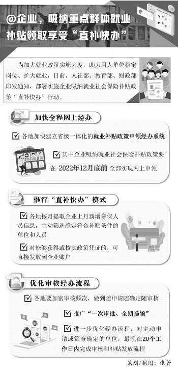 @企业,吸纳重点群体就业 补贴领取享受“直补快办”