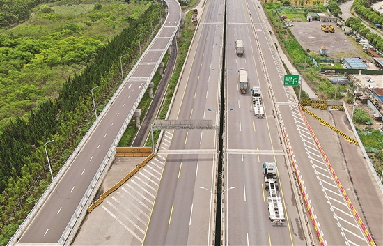 当日,随着上汽友道智途旗下的5G+L4智能重卡在东海大桥位于上海一侧的引桥下出发,东海大桥自动驾驶测试专用道管理措施在上海正式开始实施,智能重卡在高速公路场景下的队列跟驰自动驾驶“减员化”运营测试也正式启动。新华社记者 方喆 摄
