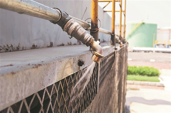为保障设备的安全平稳运行和节能降耗的需求,该站生产运行班的员工们动起了脑筋。他们先用纱网将空冷器的散热部位进行无死角覆盖,在保证空气流通的同时避免了蚊虫和沙尘侵入设备内部。随后,在空冷器的顶部设计安装好冷却水喷淋装置,利用水流带走散热片热量的同时,冲洗干净纱网和冷却器外部。