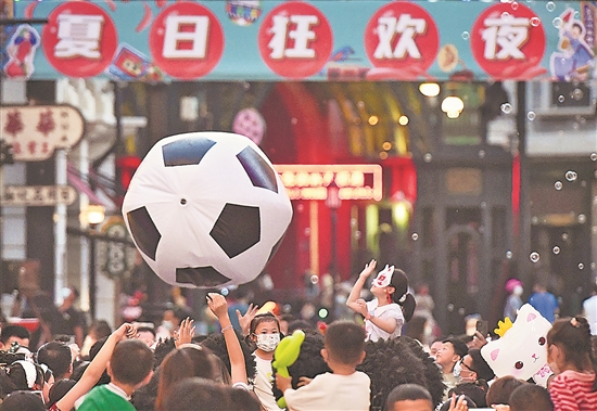 近期,河南省郑州市推出系列举措,在做好疫情防控的前提下,不断调整优化业态,强化商旅文融合,打造“夜经济”特色品牌,激发城市活力。在位于郑州市中牟县的电影小镇里,缤纷的夜场活动陆续上演,人们沉浸在丰富的场景和表演中,感受夏日夜晚的激情。