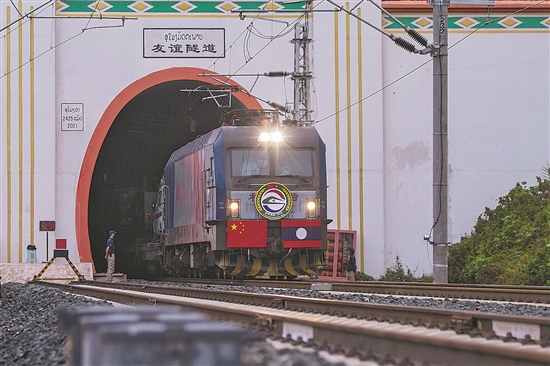 中老铁路北起中国昆明,南至老挝万象,是第一条采用中国标准、中老合作建设运营并与中国铁路网直接连通的境外铁路,全长1035公里,去年12月3日全线开通运营。