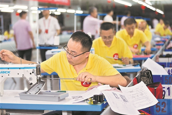 近日,参赛选手在比赛中。当日,全国缝制机械维修职业技能竞赛山东分赛区比赛在青岛市即墨区举行。来自山东省纺织企业的60名选手,针对包缝机、套结机、锁眼机等设备的故障排查和修复展开比拼。新华社发(梁孝鹏 摄)