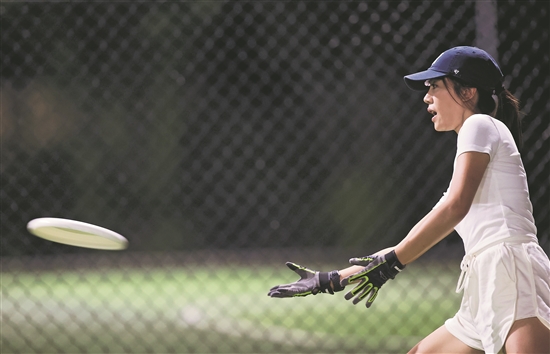 在当天下午的比赛中,WHATEVER队两场全胜,比赛中连续得分的阿苗心情大好,不时地和队友拍照分享这一喜悦。 赛场外,阿苗就职于一家潮流媒体,是一位时尚博主。平日里,她喜欢把自己训练和比赛的照片在互联网平台进行分享。说起为什么组建这支飞盘队,另一位主理人韩天说,“我想让大家玩得更专业。”而这也是飞盘教练王彬对这项运动在中国发展的期望。