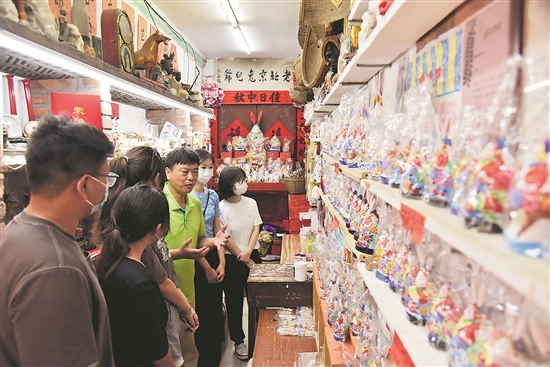 7月20日,来自北京城市学院的同学们来到店铺内,拜访兔儿爷第五代非遗传承人——张忠强先生,他们希望通过学习掌握基本技巧,经过精简后,再去教幼儿园的孩子们。