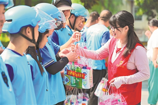 当日,德清县武康街道总工会开展“关爱外卖员 爱心降酷暑”夏日送清凉活动,为辖区外卖员送去水果、洗漱套装及防暑药品等,让他们在炎炎夏日感受到来自“娘家人”的清凉和关怀。