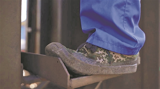 为了防止烫伤,钟燕磊必须穿戴特制的工服和工鞋才能作业。“车梯温度太高,普通橡胶鞋的鞋底会融化。我们这个工鞋都是加厚的橡胶底,虽然更闷热,但防护效果更好。”钟燕磊说。