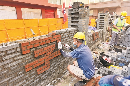 7月25日,砌筑工岗位技能竞赛现场,工人正在比赛中。当日,由黑龙江哈尔滨市总工会主办、哈尔滨市建设交通物流工会承办、中建二局四公司东北分公司协办的“喜迎二十大、奋进新征程”砌筑工岗位技能竞赛在市工人文化宫举行。刘洋 摄/视觉中国