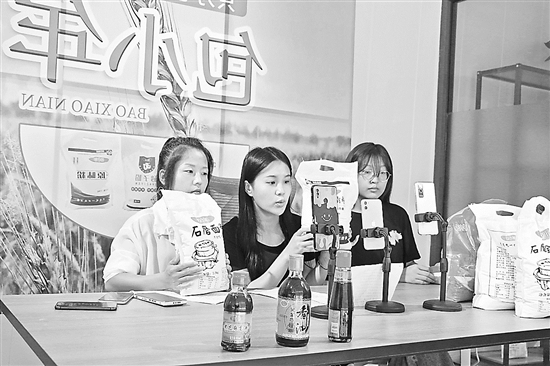 在乡村振兴爱心助农专场直播间,主播们在销售本地帮扶产品。