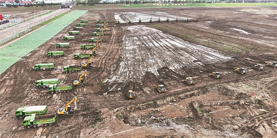 淮河入海水道二期工程总投资438亿元,被列入国务院今年重点推进的55项重大水利工程清单。据介绍,入海水道二期工程实施后,可使洪泽湖防洪标准提高到300年一遇。工程建成后,将有力保障淮河流域2000多万人口、3000多万亩耕地防洪安全。(上图为淮河入海水道二期工程淮安先导段开工现场)