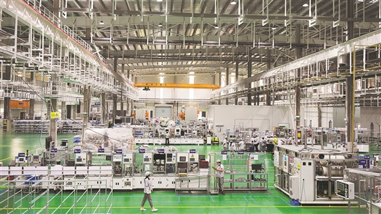 这是位于浙江绍兴市越城区的绍兴三花新能源汽车部件产业园即将投产的超级车间。该车间采用U形线单件流设计,主产线实现全流程自动生产。