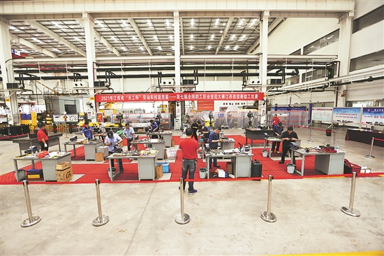 2021年江西省“天工杯”劳动和技能大赛暨第七届全国职工职业技能大赛江西选拔赛钳工决赛现场。