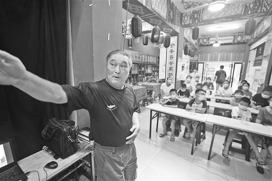 来自江西省南昌市东湖区的摄影师戴廷耀是一位退伍军人。2001年起,戴廷耀在江西省文联和江西省老干局等部门支持下,走访全国各地,为340位江西籍以及在江西工作过的老红军拍摄照片并进行口述采访。图为他在为学生讲述老红军的故事。 新华社记者 周密 摄