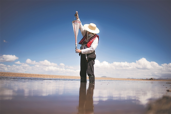 图为7月25日,长江科学院科考队员李鲁丹在采集浮游动物样本。
