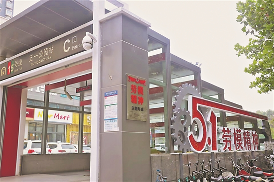 8月2日,以“劳模精神、劳动精神、工匠精神”为主题的车站在河南省郑州市五一公园地铁站揭牌。