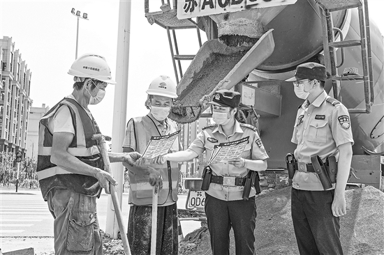 7月27日,安徽省马鞍山市和县公安局民警对建筑工人进行反电信诈骗宣传。针对当前电信诈骗手段不断翻新,当地公安机关在加大打击力度的同时,强化宣传教育,讲解诈骗新伎俩,引导市民识骗防骗。本报通讯员 秦祖泉 摄