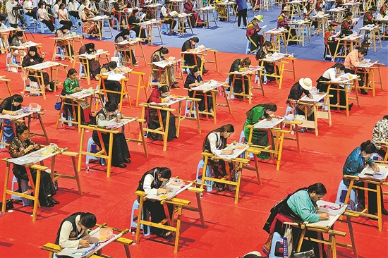 8月3日,青海省土族、藏族等多民族“绣娘”齐聚“青绣之源”海东市,进行青绣行业职工职业技能大赛。青绣历史悠久、技艺独特、民族风韵浓郁。目前,河湟刺绣、土族盘绣等先后列入国家级、省级非物质文化遗产代表作名录,已成为青海最具代表性的文化符号。