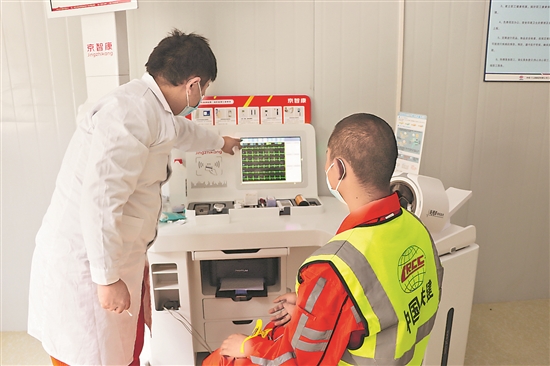 4月初,该公司工会在公司行政支持下为项目建设了“健康小屋”,“小屋”内配有互联网健康检测设备,使1000余名施工人员不出矿山就能检测血压、血糖、尿酸等近20个项目。本报记者 刘静 本报通讯员 冯宏超 陆高 摄