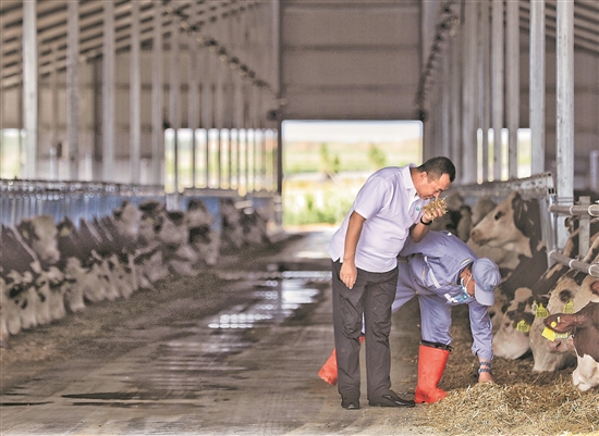 张振平是神木当地人,年轻时当过建筑工,下过煤矿,开过加油站,目前旗下有多个煤炭、化工企业。2020年,张振平先后投资4亿元,建起了进口纯种牛繁育、育肥基地,规模近1万头,安排当地近百人就业。本报记者 杨登峰 摄