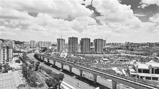 该线路采用由中车长春轨道客车股份有限公司自主研制的双流制市域轨道车辆,列车运用国内首创的双流自动切换技术,为市郊与城区的“一车直达”“零换乘”提供了全新的运营模式。图为双流制As车辆在江跳线上快速行驶。苏晓雷 摄