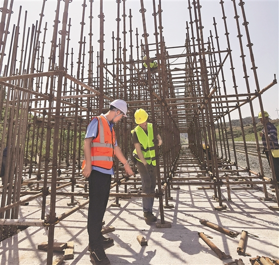 8月5日,叙毕铁路(川滇段)项目一线的建设者,在38摄氏度高温天气下,奋战在施工一线。叙毕铁路(川滇段)由蜀道集团叙镇铁路公司建设管理,中铁十二局集团电气化工程有限公司、四川省铁路建设有限公司联合体承建,建成后将促进川南、滇东北及黔西北地区的经济社会全面发展。本报通讯员 吕洋 摄