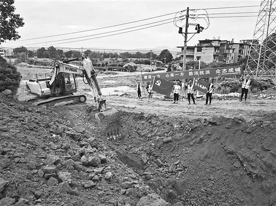 近日,江西上饶遭遇多轮强降雨,辖区内河流和水库水位上涨,防汛形势严峻。中铁十五局集团四公司上饶安置房项目立即启动防汛应急预案,由党员带头组成“青年突击队”对受灾严重的乡镇村庄进行抢险救援,累计出动人员127名,装载机等机械57台班。李日招 摄