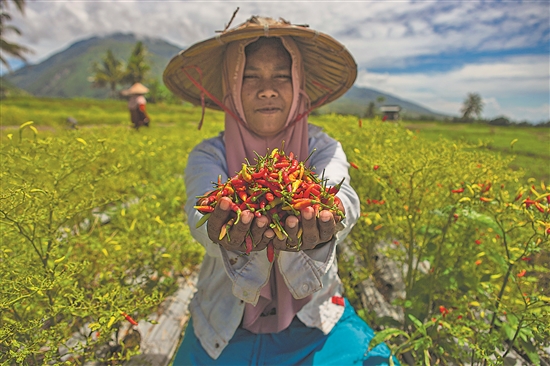 在印度尼西亚,辣椒是重要的农作物,也是印尼菜中不可或缺的调味品,深受人们喜爱。新华社发(奥潘 摄)