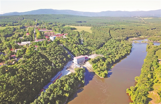 这是8月12日拍摄的坐落于牡丹江畔的镜泊湖发电厂厂区局部。
