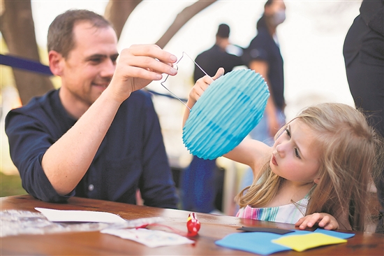 8月13日,在巴西首都巴西利亚举办的“中国一瞬”文化体验周活动上,人们参加灯笼制作体验活动。新华社发(卢西奥·塔沃拉 摄)