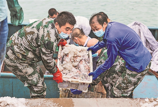 目前,黄渤海海域仍然处于伏季休渔期,但是每年的这个时候,正是鱿鱼的丰收季。自8月1日起,为期15天的鱿鱼专项捕捞作业结束,渔民喜获丰收,满载而归。李信君 摄/人民图片
