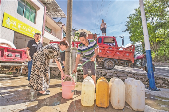 连日来,重庆巫山持续高温晴热天气,部分地区出现干旱现象。重庆市巫山县因地制宜采取蓄水保水、补充水源、分片分区轮流供水及应急送水等抗旱应急措施,保障群众生活生产用水。