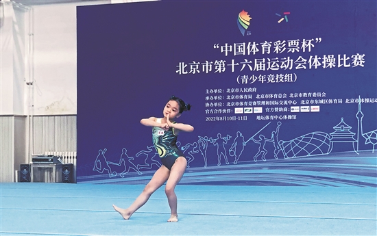 近日,北京市第十六届运动会体操比赛(青少年竞技组)在地坛体育中心体操馆顺利落下帷幕。图为参赛运动员在决赛中。(本报记者 刘兵 摄)