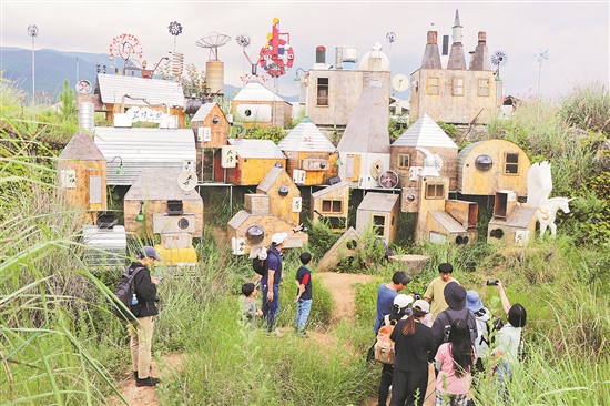 图为8月17日,乔小刀在向游客介绍自己的创作灵感,讲解建筑语言,分享对于文旅融合的想法。本报记者 赵黎浩 摄