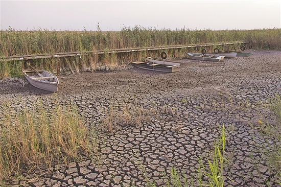 这是8月18日在匈牙利帕科兹德附近拍摄的局部干涸的韦伦采湖。匈牙利正遭遇“前所未见”的干旱,至少数十万公顷农作物受损。新华社发(弗尔季·奥蒂洛 摄)